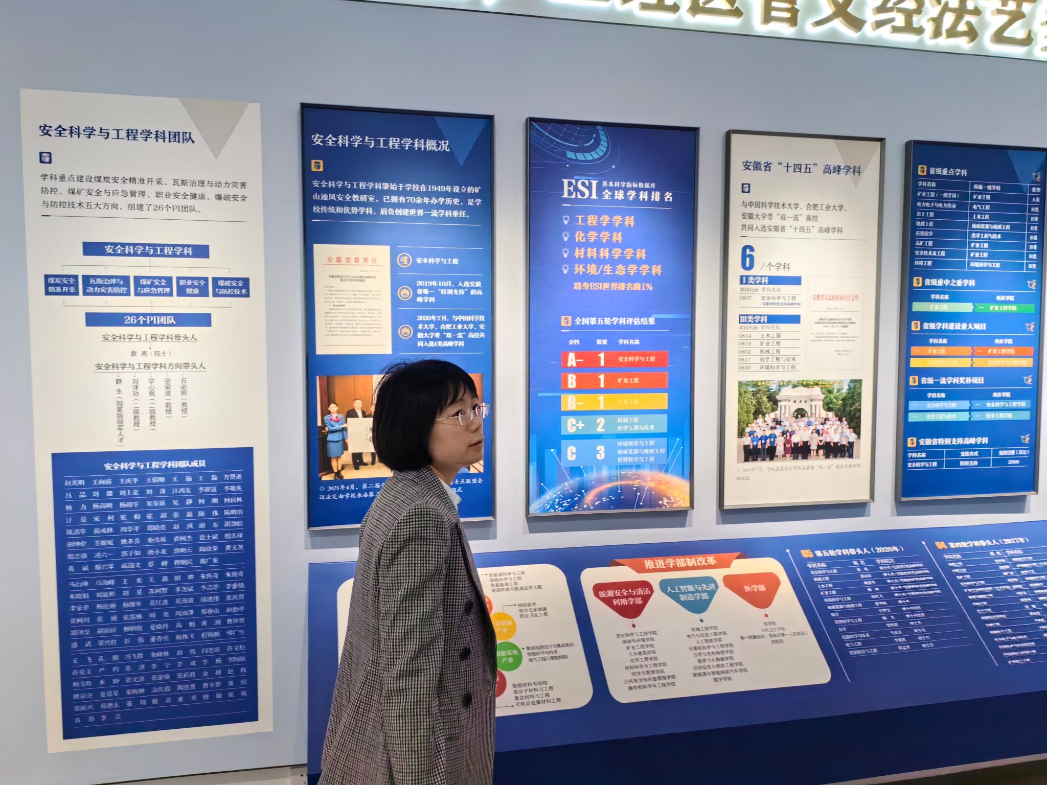 双方在采矿工程、安全工程的学科建设、专业特色、人才培养、学生就业、科学研究与平台建设、师资引进等方面进行了深入交流。考察交流期间,同中国工程院院士、现任安徽理工大学党委副书记、校长袁亮院士座谈交流,听取了袁院士对采矿工程、安全工程的学科科研平台的建设思路,并参观安徽理工大学校史馆,充分了解了安徽理工大学的学科建设、人才培养、科学研究与平台建设发展情况。