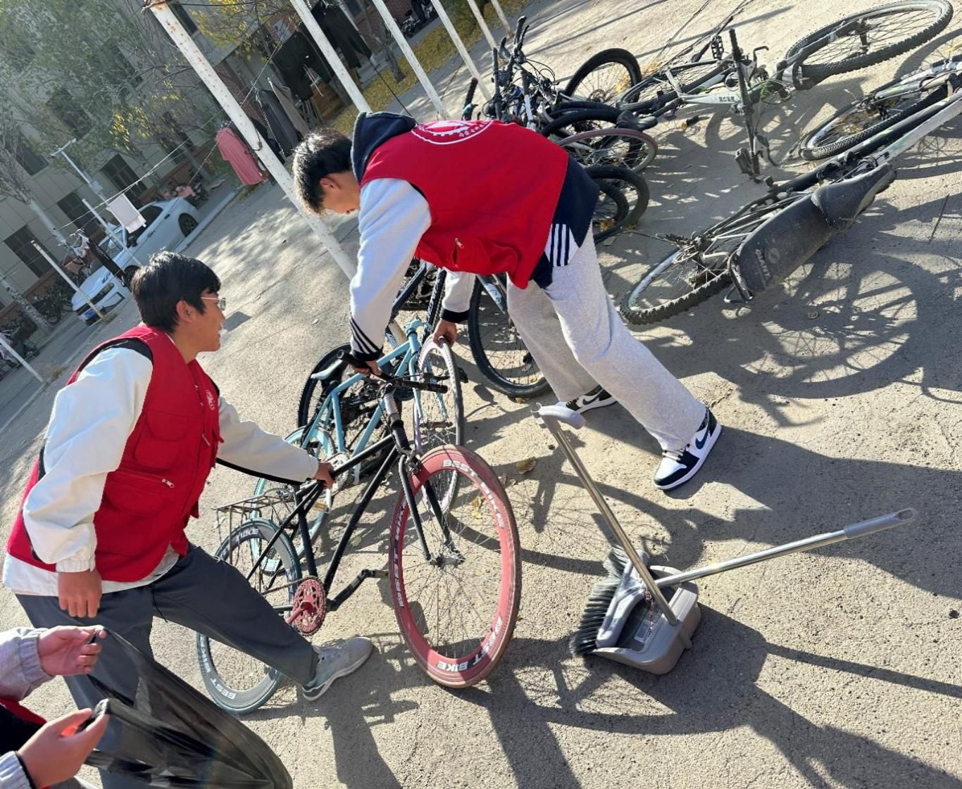 活动中,志愿者们来到社区周边按照“规范停放、摆放有序、朝向一致”的原则,对沿线未按秩序停放的共享单车进行文明摆放,将占道的单车有序归位。期间,志愿者们还向周边群众宣传文明骑行、有序停放的重要意义,引导骑行者将共享单车摆放到停放区域,并鼓励大家监督身边的不文明行为,共同维护良好的城市环境。经过志愿者们的共同努力,网格点沿线60多辆共享单车摆放整齐。此举不仅方便了群众,更美化了市容市貌。