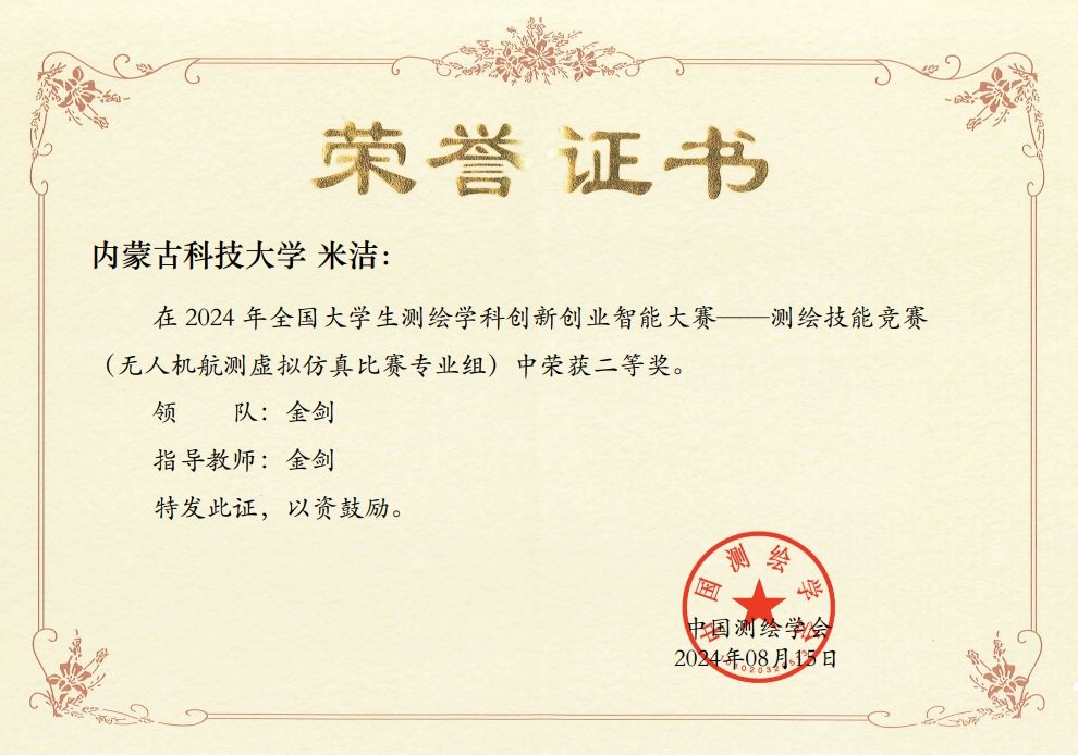 beat365测绘工程系学子经过积极选拔与备战,参与了大赛各个项目的激烈角逐。最终,在金剑老师的指导下,beat365优秀学子米洁从来自全国360所高校的近8000名学生中脱颖而出,获得无人机航测虚拟仿真比赛的全国二等奖。