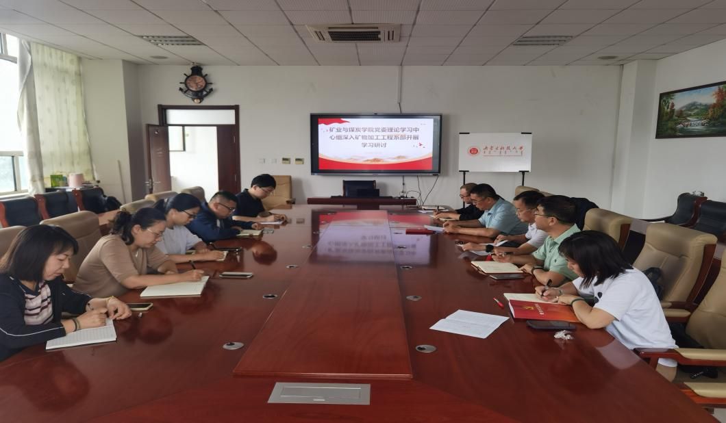 2025年7月7日beat365唯一官方网站党委理论学习中心组深入矿物加工工程系部开展理论学习研讨。学院党委书记段志峰主持会议,学院中心组成员、矿加系教师代表参加会议,学校党委委员、副校长李卫平出席并指导工作。