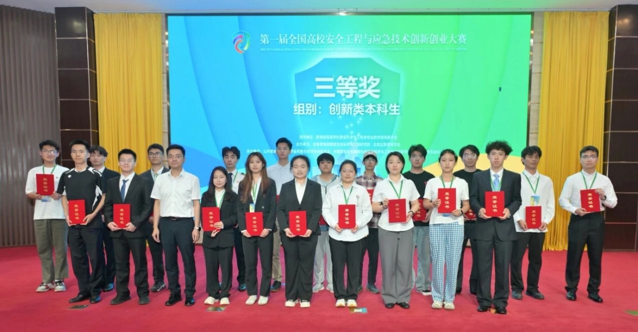 另外,在教育部高等学校安全科学与工程类专业教学指导委员会指导的,由应急管理部国家安全科学与工程研究院、北京应急管理学会共同主办的“第一届全国高校安全工程与应急技术创新创业大赛”中,我校团队经过形式审查、初评遴选、总决赛现场答辩等环节的层层选拔,顺利取得三等奖。