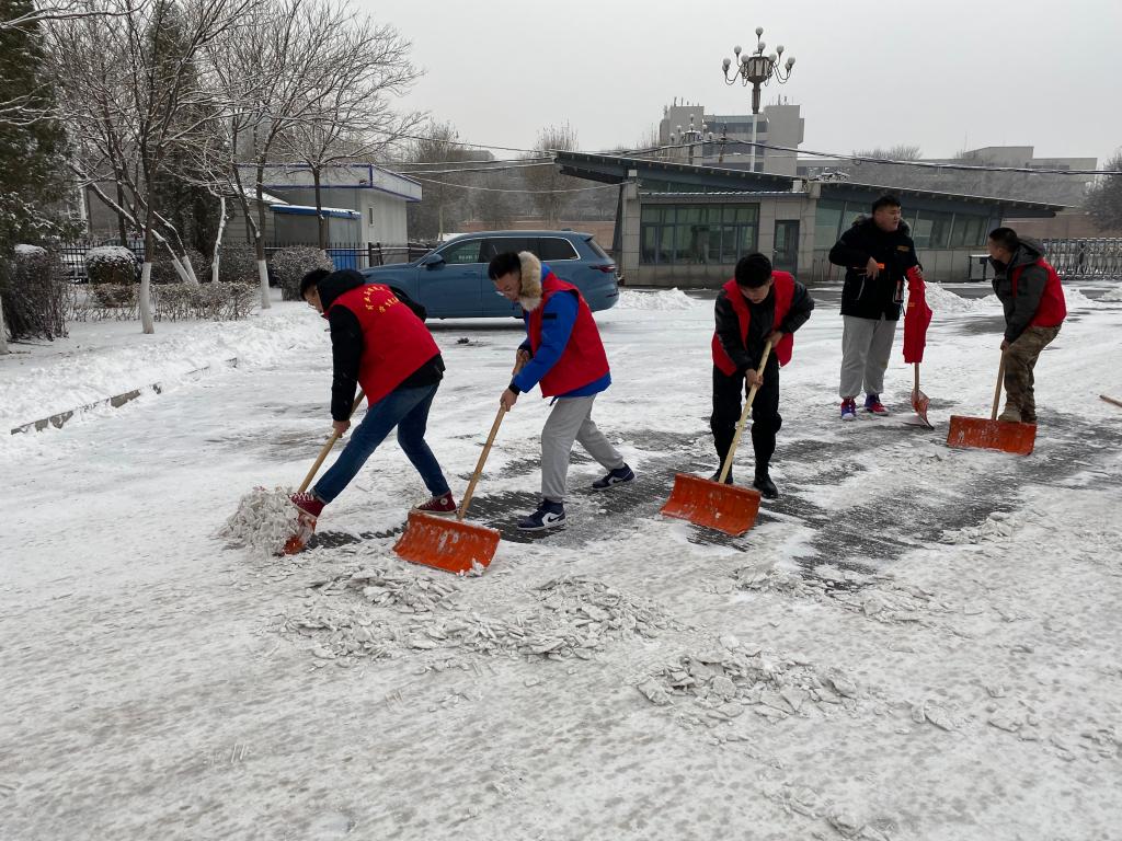 2021年12月8日下午,beat365唯一官方网站学生第一党支部开展校内除雪志愿服务活动。