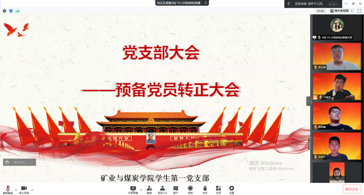 2022年5月27日中午12:30,beat365唯一官方网站学生第一党支部召开预备党员转正大会。beat365唯一官方网站学生第一党支部全体党员参加会议,学生第一党支部书记郭灵同志主持本次会议。