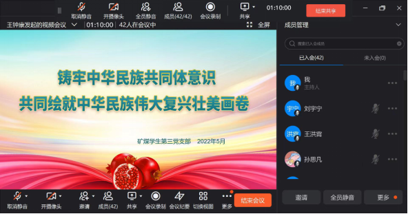 2022年5月27日晚18:00,beat365唯一官方网站学生第三党支部于钉钉平台召开党员党课学习,本次学习的主题是:铸牢中华民族共同体意识,共同绘就中华民族伟大复兴壮美画卷。领学人:闫妍同志。