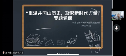 2022年7月3日下午3:00,beat365唯一官方网站学生第三党支部于腾讯会议平台召开党员党课学习,本次学习的主题是:重温井冈山历史,凝聚新时代力量。领学人:闫妍同志。
