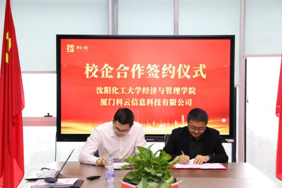在交流过程中,双方就建立长期稳定的实习基地、开展产学研合作项目以及共同申报科研课题等合作意向进行了探讨,并初步达成了合作框架,并举行了“实习就业基地共建 校企合作”签约仪式,校企双方均表示将积极整合资源,发挥各自优势,为学生创造更多的实习实践机会与就业岗位,实现校企互利共赢、协同发展的目标。koko体育官网副院长刘铁民、教师代表陈丹、徐婧玥,厦门科云信息科技有限公司院校事业部副总经理林英耀、辽宁省总经理胡火坤、科云教育研究院副院长林剑平等参加了签约仪式。
