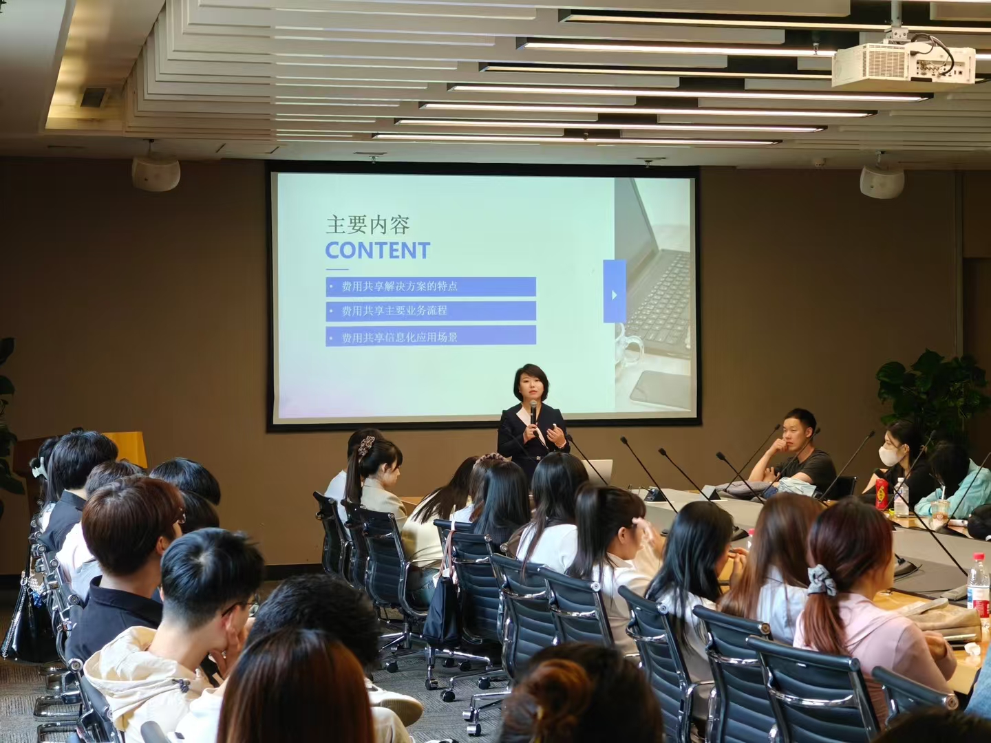下午,师生们转赴沈阳诚致盛财务管理咨询有限公司。马凤玲总经理结合上午参访的实践观察,聚焦“财务共享中心的核心业务流程”进行了深度剖析。她凭借丰富的行业经验,通过生动的案例解析和翔实的数据展示,将理论知识转化为鲜活的认知,同学们纷纷表示受益匪浅,深化了对课堂内容的理解。