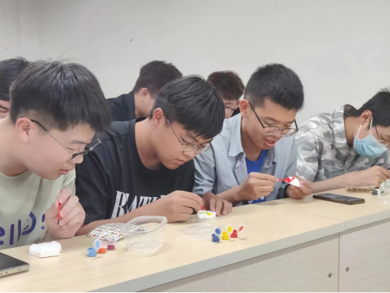 活动开始,同学们迫不及待地开始了自己的创作;有的对着石膏娃娃寻找灵感;有的耐心调制自己所喜爱的颜色;有的提起画笔细心描绘着……教室里充满着轻松活泼的氛围与艺术气息。