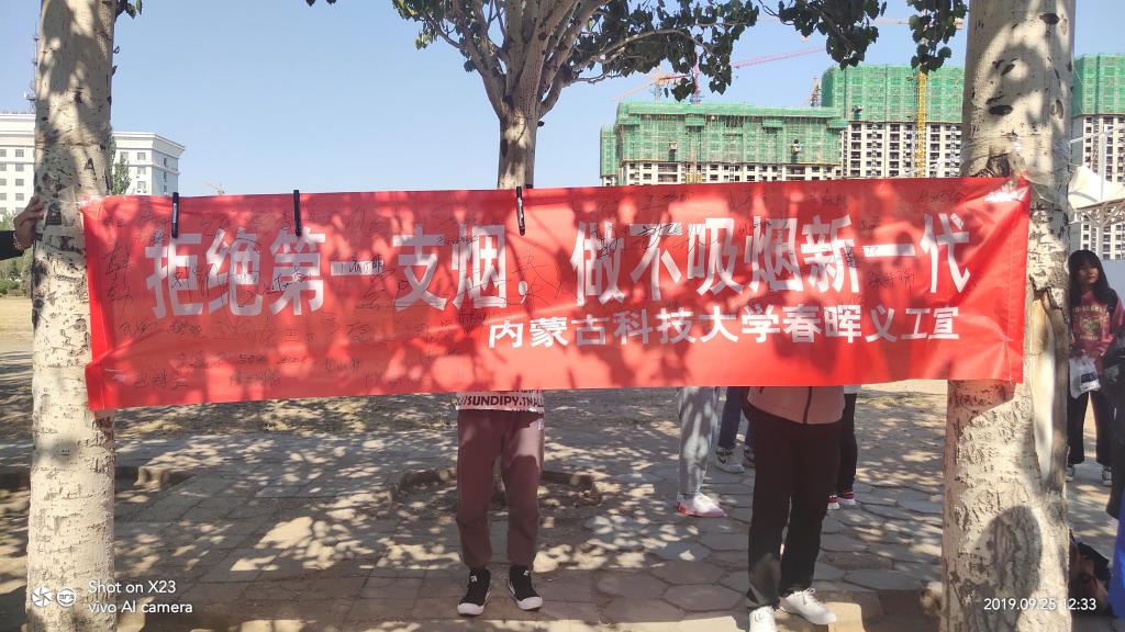 为创造一个洁净、优美的校园环境,2019年9月25日beat365唯一官方网站春晖义工协会在东校区梅园餐厅门口开展了“不忘初心、牢记使命”为主题的禁烟教育活动。