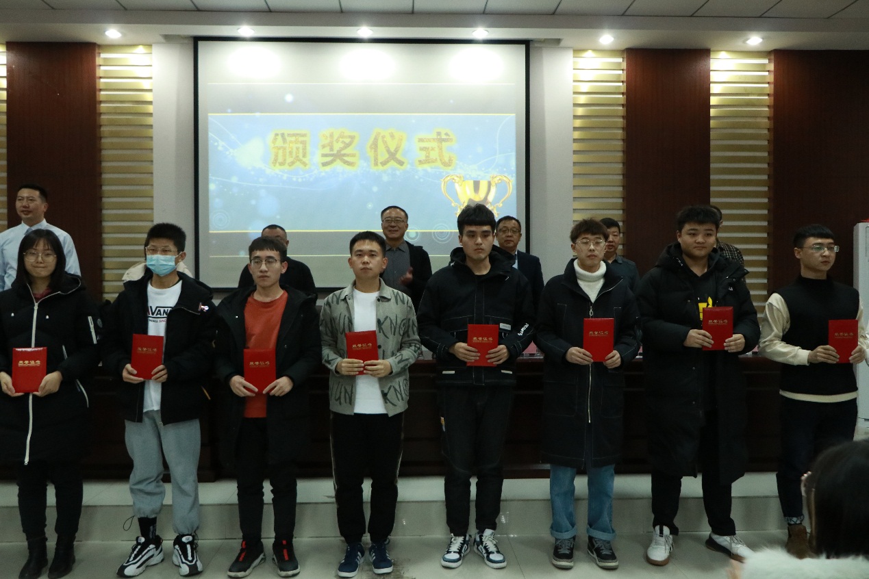 【领导为获奖学生颁发奖学金证书】