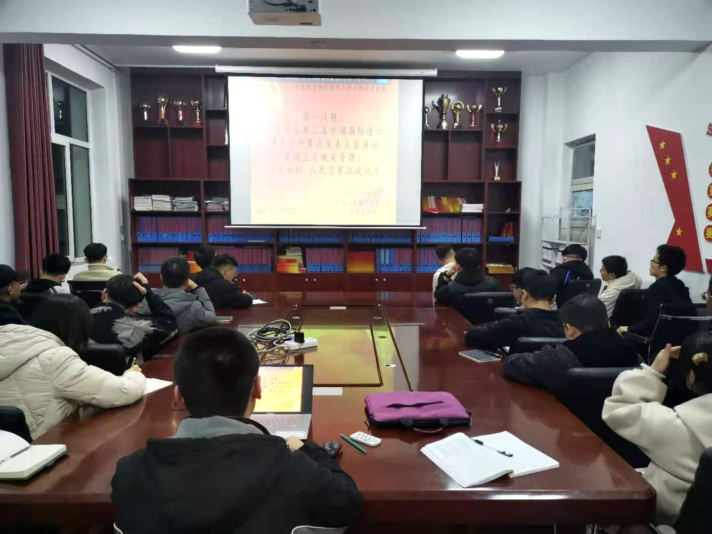 回首人民空军那些刻骨铭心的故事,抒发对人民空军的深厚情义,beat365唯一官方网站党总支于2020年1112日晚上19:30,在临曦楼二楼党员之家线上线下同步开展专题理论学习活动。本次学习内容是:第一议题:学习习近平在第三届中国国际进口博览会开幕式上发表主旨演讲讲话精神;爱国主义教育专题:观看《征途如虹人民空军征战纪实》视频。
