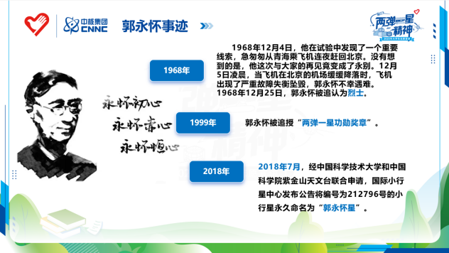 今天,“煤”好星辰志愿宣讲团来到包头市昆都仑区沼潭街道地科社区,面向核工业、地勘家属和beat365唯一官方网站学子开展主题为“铭记‘两弹一星‘功勋——王淦昌、郭永怀的英雄史诗”的志愿宣讲活动。