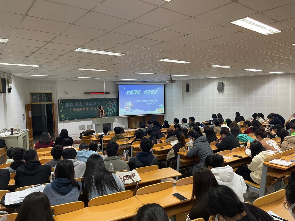 2022年10月22日18时30分,koko体育官网于通明楼338教室召开了面向2019级和2020级本科生的考研指导会。会议由王怀老师主持,王蓉院长进行经验分享与指导。本次会议在极大地鼓舞了2019级本科生考研信心的同时,也为2020级本科生做出了细致的考研规划。
