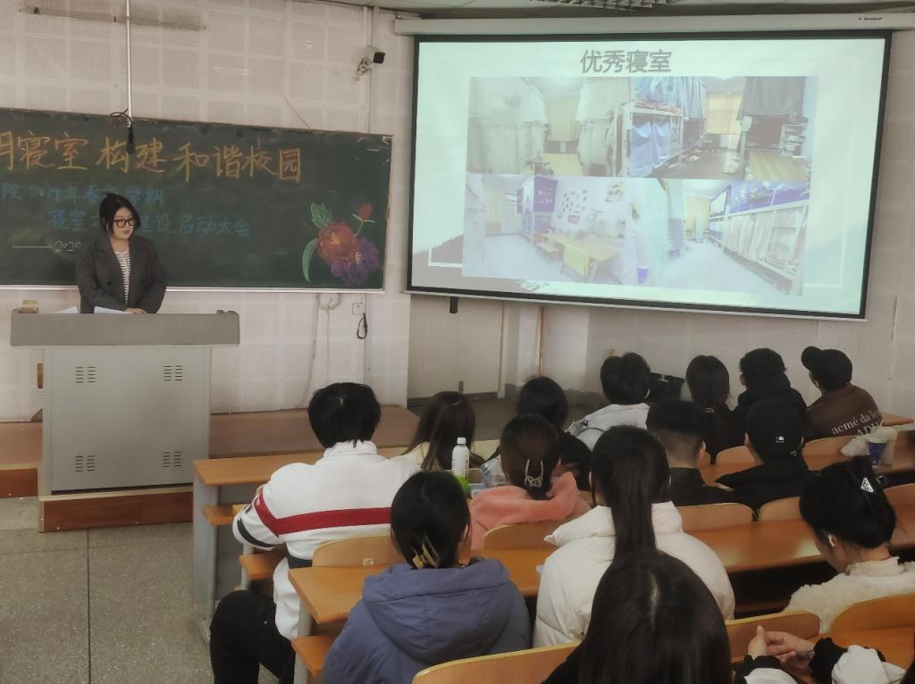 为营造良好的寝室文化氛围,提升学生的自我管理能力,推动koko学风建设,koko体育官网于3月19日中午,在瑞师楼124教室召开以“营造文明寝室 构建和谐校园”为主题的寝室文化建设启动仪式大会。koko体育官网党委书记李丙文、学工办全体辅导员、本研学生寝室代表出席会议。大会由学院学生会生活部负责人安雨欣同学主持。