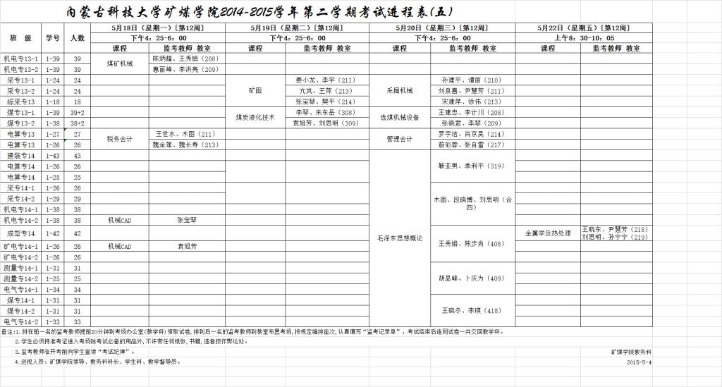 14-15(2)春学期矿煤学院(高职)考试进程表(五)